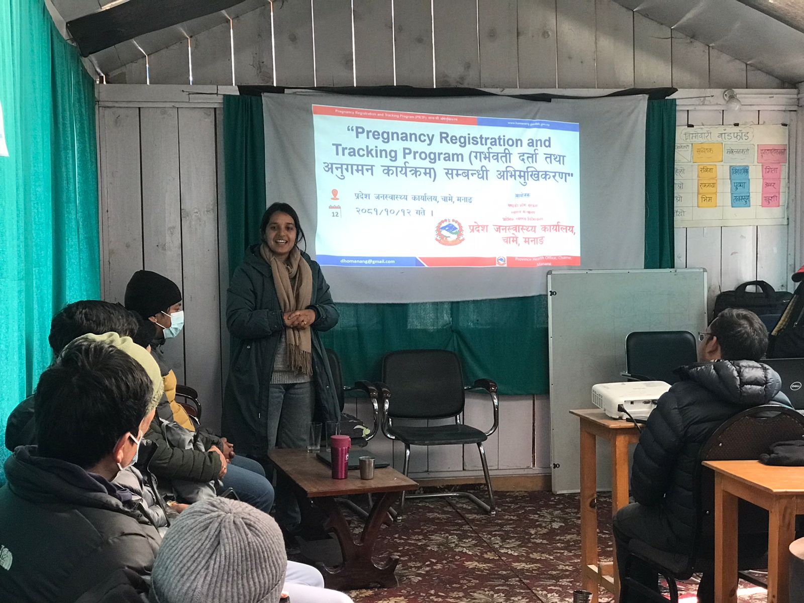 प्रदेश जनस्वास्थ्य कार्यालय मनाङको वार्षिक स्वीकृत कार्यक्रम "Pregnancy Registration and Tracking Program (गर्भवती दर्ता तथा अनुगमन कार्यक्रम) सम्बन्धी छुटेका स्वास्थ्यकर्मीहरुलाई अभिमुखीकरण कार्यक्रम" मिति २०८१/१०/१२ गतेका दिन सम्पन्न भएको छ। कार्यक्रममा अध्यक्षता कार्यालय प्रमुख रबिना ठगुन्नाले गर्नुभएको थियो भने सहजीकरण प्रदेश जनस्वास्थ्य कार्यालय मनाङका परिवार नियोजन सुपरभाईजर निरिक्षक विर बहादुर श्रेष्ठ र चामे स्वास्थ्य चौकीका प्रमुख सवराज देवकोटाले गर्नुभएको थियो। कार्यक्रममा चामे गाउँपालिकाका स्वास्थ्य शाखा प्रमुख र विभिन्न स्वास्थ्य संस्थामा कार्यरत स्वास्थ्यकर्मी गरेर २४ जना काे उपस्थिति थियो। मनाङ जिल्लाका सम्पुर्ण गर्भवती महिलाहरुलाई तथा १२ देखि ४९ वर्षसम्मका महिला र ५ वर्ष मुनिका बालबालिकाको मृत्युलाई पनि PRTP App मार्फत रजिष्टर गर्ने प्रतिबद्धता सहित कार्यक्रम समापन भएको छ।